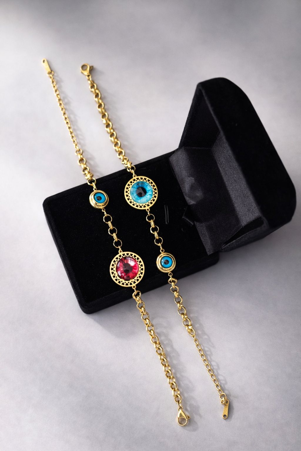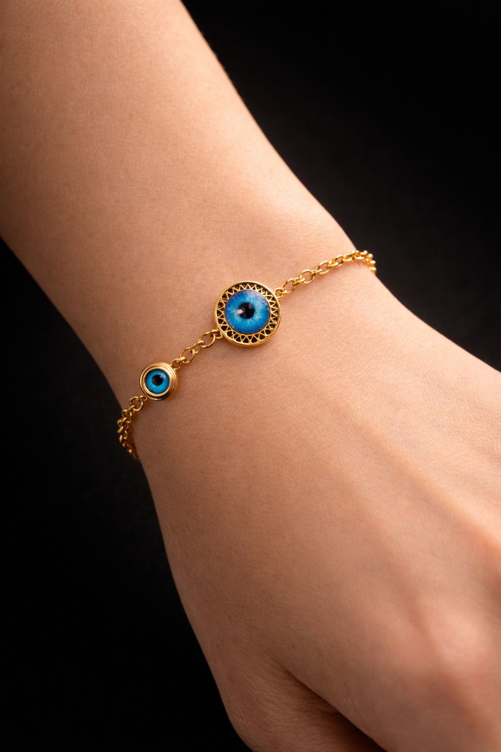 Ochiul albastru este un simbol cunoscut în multe culturi pentru rolul său de protecție energetică. El este asociat cu respingerea energiilor negative și cu menținerea clarității în câmpul energetic. În același timp, ochiul simbolizează discernământul și capacitatea de a vedea lucrurile cu claritate. În contextul acestei brățări, ochiul protector menține energia stabilă atunci când apar oportunități noi, decizii importante sau proiecte în dezvoltare.
