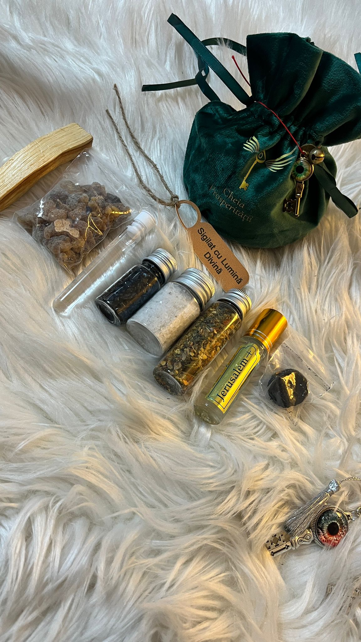 Am creat Scutul Luminii Divine – talisman de protectie a casei, un saculet sacru ce uneste elemente rare si binecuvantate intr-un scut energetic invizibil care vegheaza asupra caminului tau: